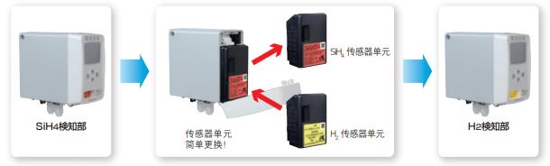 通過(guò)完全共享傳感器單元,只需更換傳感器單元即可改變可燃?xì)怏w、毒性氣體、氧氣等檢測(cè)對(duì)象氣體!