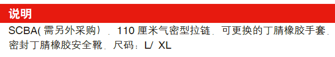 霍尼韋爾 氯丁橡膠氣密型化學防護服RINBA?PATROL 產品特點: ? RINBA?PATROL氣密型化學防護服符合EN943-1歐洲化學防護服一級氣密型防護標準, 氯丁橡膠對多種不同化學物質都具有優越的防護性能。