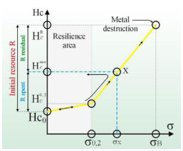 因此可以在2倍初始矯頑力增量范圍內(nèi)來(lái)評(píng)估金屬的安全狀態(tài):通過(guò)測(cè)量當(dāng)前矯頑力值Hc,計(jì)算其與初始狀態(tài)與斷裂前數(shù)值之差額,預(yù)測(cè)工件的已服役壽命和殘余壽命