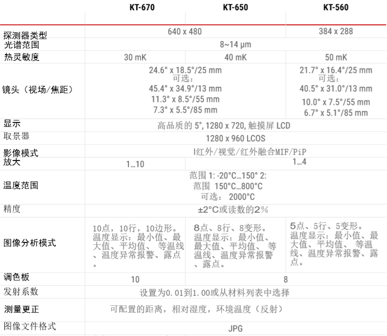 波蘭SONEL(索耐) KT-670 / KT-650 / KT-560熱像儀 相關(guān)參數(shù):