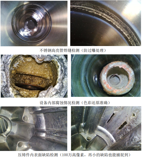 工業視頻內窺鏡(又名:窺視鏡)是無損檢測的一個分支,也是一門專用的 檢測技術。適用于高溫、有毒、核輻射及人眼無法直接觀察到的場所的檢查和觀 察(如:汽車裝配、汽車鑄造、發動機、管道、機械零件、壓力容器、電力系統、風 力發電、化學、機械設備、鐵路機車等),可在不需拆卸或破壞組裝及設備停止運 行的情況下實現無損檢測,能大幅度提高檢測效率與設備的安全性能。