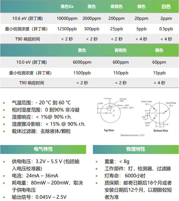 美國NovaPID – TVOC 光離子化傳感器 相關參數: