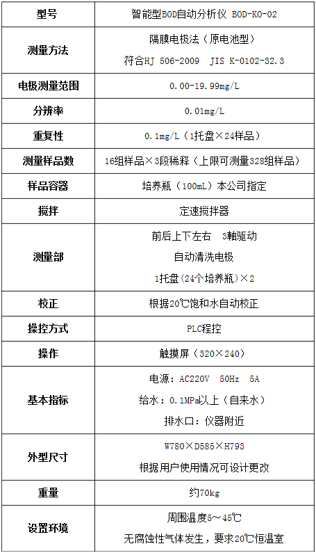盛奧華 智能型BOD自動分析儀BOD-KO-02型 性能指標(biāo):