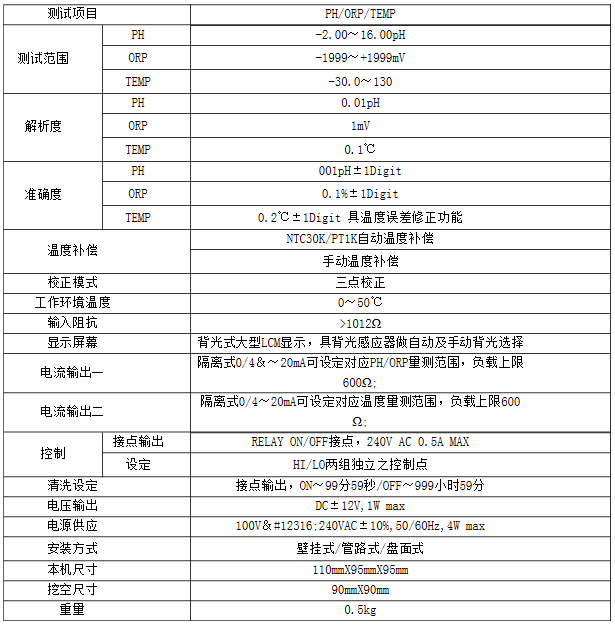 盛奧華 PC-1000型在線酸度計(jì)/PH計(jì) 技術(shù)指標(biāo):