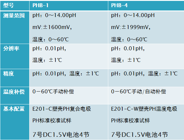 齊威 PHB-1/PHB-4微機(jī)型便攜式Ph計 產(chǎn)品參數(shù):