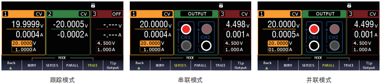 DH1766 系列具有串聯、并聯、跟蹤 3 種模式,可本地一鍵切換,滿足不同量程及正負電壓輸出的需求。