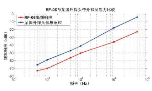 射頻探頭增強對 100kHz 以下低頻信號抑制能力,對工頻信號抑制大于 72dB,對日光燈(20kHz~30kHz)干擾抑制大于 20dB。