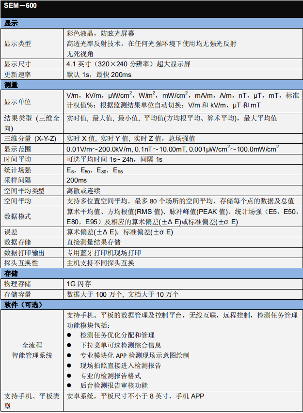 SEM-600 電磁輻射分析儀 技術參數(shù):