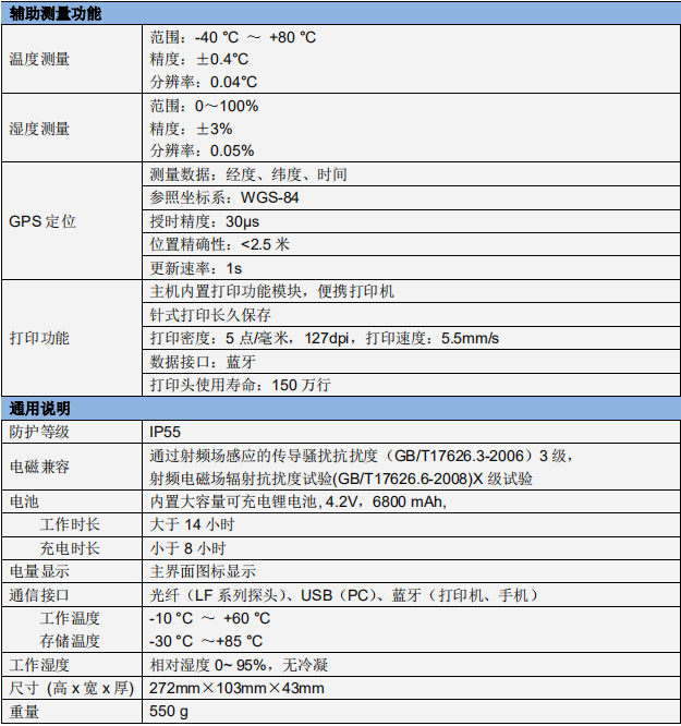 工作溫度-10℃~+60℃,工作相對濕度 0~95%,各種環(huán)境下均能準確測量。IP55 級防護,滿足多種環(huán)境下的測試需求。