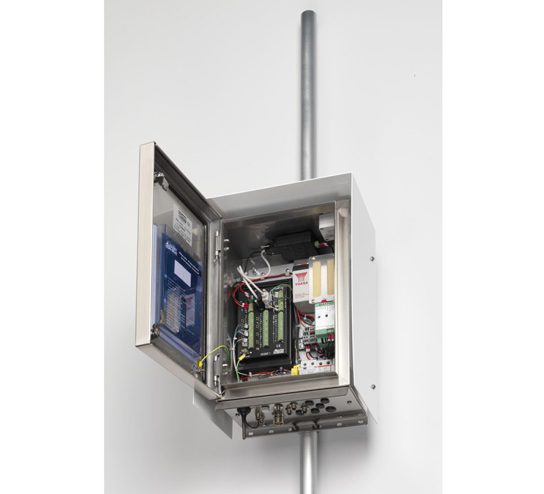 HD32.35FP:室外氣象站的采集系統。材質為AISI304不銹鋼。罩子可以防止太陽輻射對防護罩的影響,表層涂有白色粉末,雙鎖,其中一個是鑰匙。尺寸為450×300×210mm,防護等級為IP66。帶直徑為36…52mm的桿的配件。同時配備太陽能電池板:HD32MT.1記錄儀、太陽能充電控制器、連接外部傳感器的接線端子。