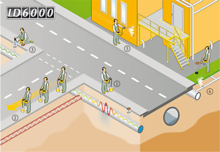 LD6000 為公用事業(yè)公司的水損失分析提供多種可能的用途:使用高靈敏度的地面探測器進行精確定位、飲用水系統(tǒng)中的微量氫氣氣體泄漏檢測、金屬和非金屬管道的路線檢測 – 或管道連接和密封件的密封性測試. 全面的設備配件,如接地探針、接地棒和高靈敏度探頭探測器,使 LD6000高精度綜合泄漏檢測儀成為德國工藝應用中快速可靠泄漏檢測的通用解決方案。