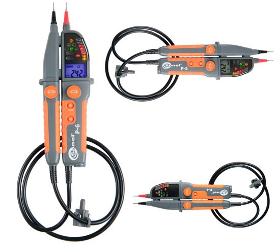 Sonel P-6,P-5 和 P-4為可靠、耐用的兩極電壓測試儀。具備電壓、電路導通性以及相序測試的功能。專為工業和商業應用極端條件下使用而設計。先進的技術、高度的安全性和簡便操作為P-X系列電壓測試儀的關鍵特點。
