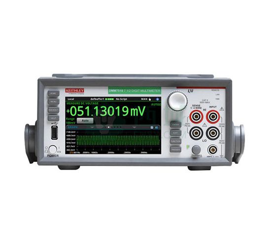 DMM7510 具有低噪聲輸入級和 32 位 A-D 轉換器,體現了 Keithley 的低電平測量專長,能提供通常只有計量級儀器才有的直流精度。