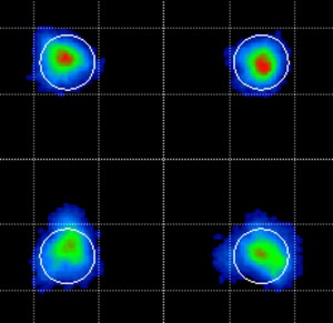 “顏色等級(jí)”功能提供了一個(gè)無限余輝圖,該圖中點(diǎn)的出現(xiàn)頻率由其顏色指示。此模式有助于揭示單色中不容易看到的圖案。請(qǐng)注意,以下示例的星座較低的組比頂層的具有較高的EVM。在大多數(shù)情況下,這表明正交調(diào)制器偏向正軌的距離過大。從近似正確的交叉點(diǎn)來看,這是不明顯的。在這種情況下,不當(dāng)偏置的調(diào)制器會(huì)掩蓋不當(dāng)偏置的驅(qū)動(dòng)器放大器。
