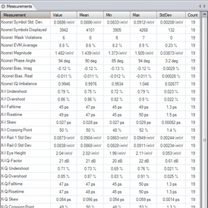 在星座圖上進(jìn)行的測量可在與每個(gè)圖形窗口關(guān)聯(lián)的“彈出”面板上找到。星座圖可用的測量值在下面描述。
