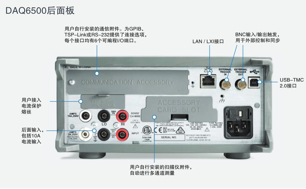 * 選配的用戶自行安裝的通信接口包括:GPIB、TSP-Link?和RS-232