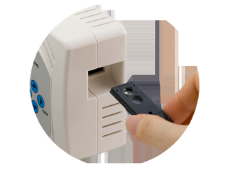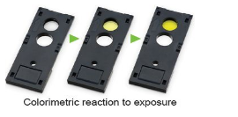 檢測原理:光電光度法——傳感器片玻窗中的多孔玻璃被注入β二酮,β二酮與空氣中的甲醛氣體發(fā)生化學(xué)反應(yīng),反應(yīng)的衍生物Rutidine使玻窗顏色不斷變黃。玻窗色變的程度與甲醛的濃度和暴露時間成正比;高精度感光設(shè)備檢測傳感器片玻窗采樣前后因顏色加深導(dǎo)致的吸光度變化,再結(jié)合內(nèi)部溫濕度傳感器提供的參數(shù)等,通過專業(yè)軟件的運算將其轉(zhuǎn)換為ppb(μg/m3)級的甲醛濃度