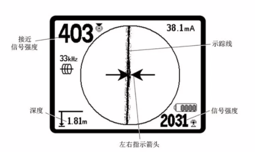 2.無線電探測模式,無線電波頻率0-1000GHz,主要應用于能感應到無線電頻率的金屬管線探測。注:在無源模式下不會用到信號發射機
