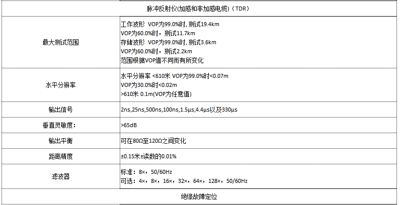 ● 脈沖反射儀(TDR)可以精確的定位開路,短路,進水,搭接,和破損等各種TDR產品可以檢測出來的電纜故障。