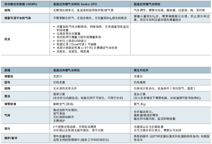 testo 370 高溫紅外煙氣分析儀 VS 低溫紅外