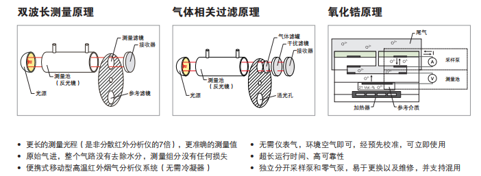 現有市面上的方法:針對固定污染源的氮氧化物以及氧氣的測量,是十分容易解決的。但是在測量正常6組分氣體的情況下還需要測量NH3氨逃逸的情況,則無法滿足。