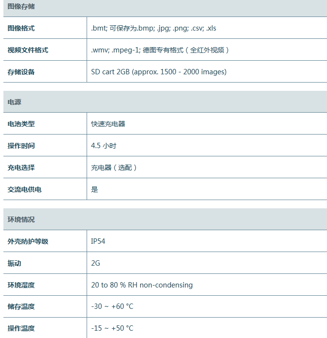 德國德圖 testo 890 高端紅外熱像儀 技術參數: