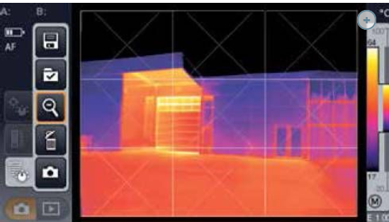 隨著經濟的發展和土地資源的緊缺,越來越多建筑往高層和超高層的趨勢發展。使用紅外熱像儀對大型建筑物進行拍攝時,由于拍攝空間的限制,只能局部進行拍攝。Testo 紅外熱像儀全新的全景圖像拼接功能,可將≤9幅圖片拼接為一幅全景熱圖,且不影響任意圖片的清晰度及拍攝數據。可對整個建筑物進行全景分析,易于發現熱缺陷。