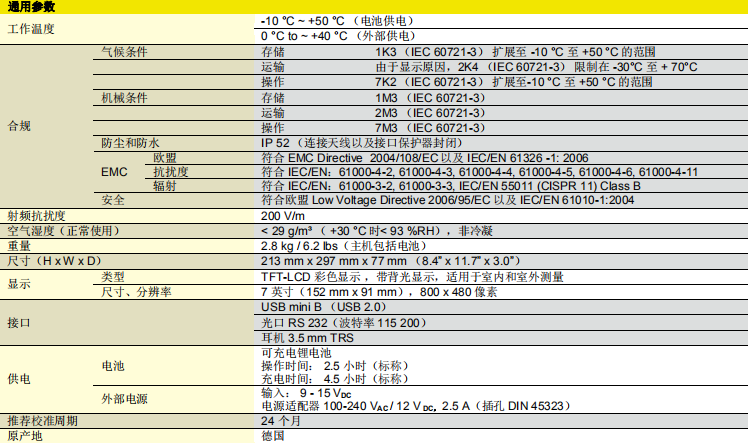 限制性規(guī)格描述了產(chǎn)品在質(zhì)保中給定參數(shù)方面的性能。限制性規(guī)格(標(biāo)記為<, ≤, >, ≥, ±, max., min)在給定條件下適用于本產(chǎn)品,在生產(chǎn)期間經(jīng)過測試,并且考慮了測量的不確定性。