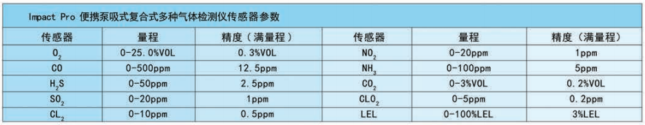 霍尼韋爾 Impact Pro便攜泵吸式復(fù)合式多種氣體檢測(cè)儀 相關(guān)參數(shù):