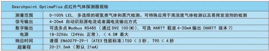 | Sieger Searchpoint Optima Plus固定式點(diǎn)紅外氣體探測器技術(shù)參數(shù) | |