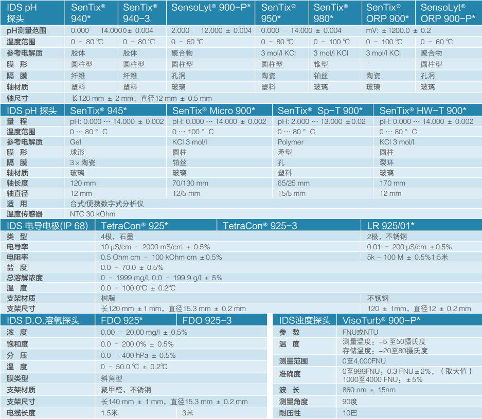 賽萊默XYLEM IDS數(shù)字式電極產(chǎn)品技術(shù)參數(shù):