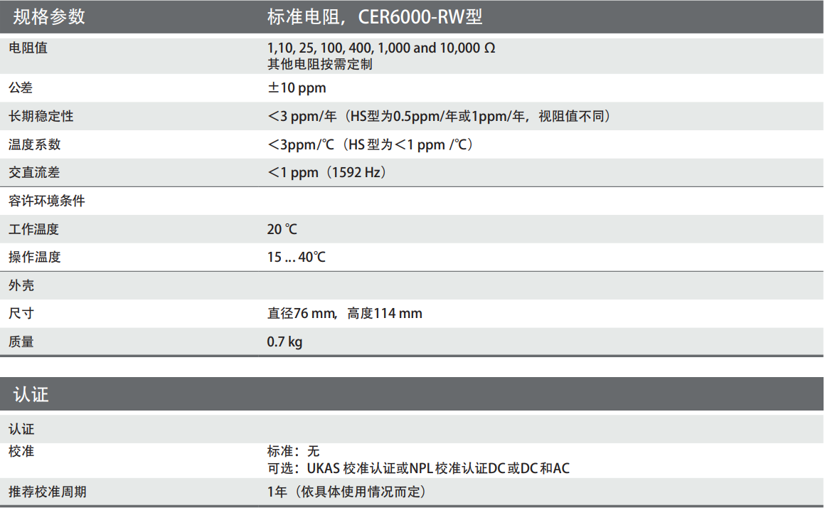 英國ASL CER6000-RW型(Wilkins 5685型)標(biāo)準(zhǔn)電阻產(chǎn)品技術(shù)參數(shù):