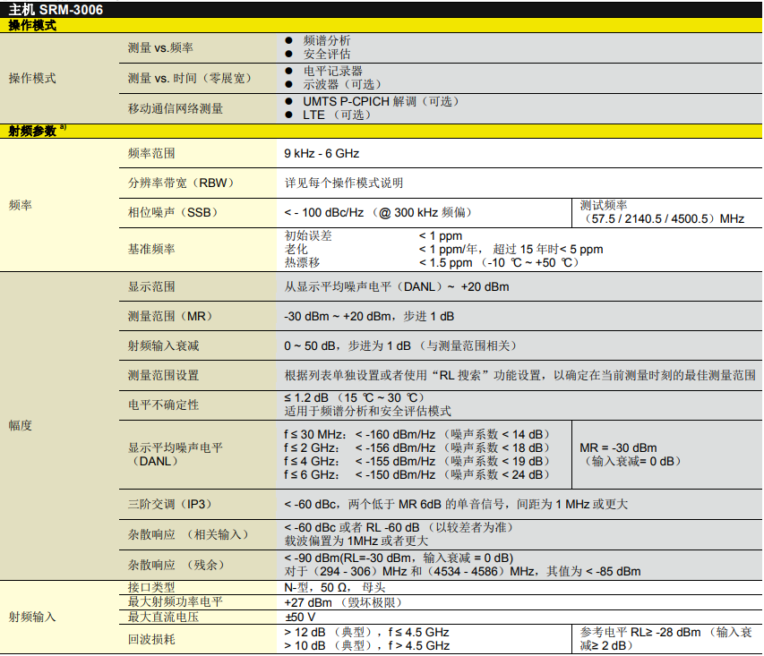 德國Narda SRM3006選頻電磁輻射分析儀產品技術規格:?