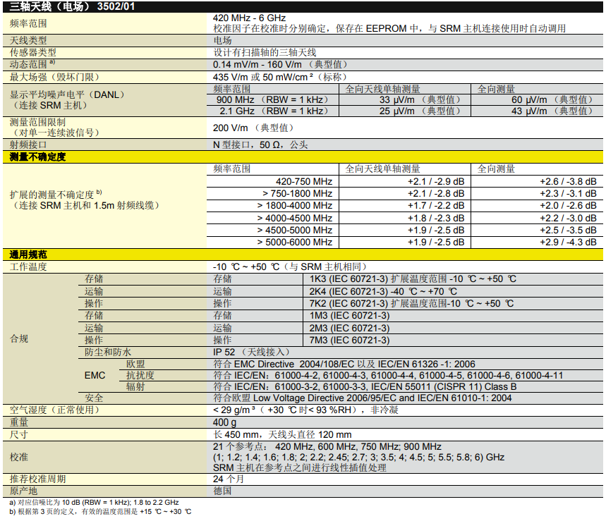 德國Narda SRM3006選頻電磁輻射分析儀產品技術參數:?
