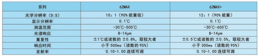 美國Fluke 62 Max/MAX+可調(diào)發(fā)射率/旋轉(zhuǎn)雙激光紅外測溫儀 相關參數(shù):