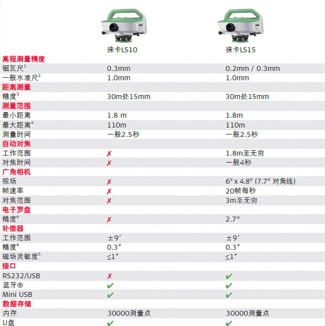 瑞士徠卡 LS10&LS15數(shù)字水準(zhǔn)儀 相關(guān)參數(shù):