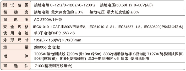 日本共立 MODEL4102AH接地電阻測試儀 相關(guān)參數(shù):