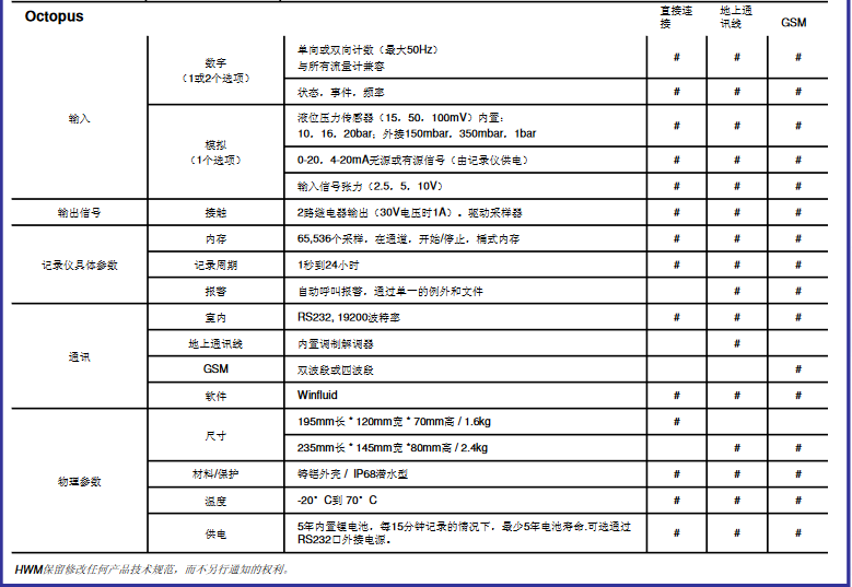Octopus遠(yuǎn)程記錄儀有多種遠(yuǎn)程傳輸選項(xiàng),如GSM,PSTN標(biāo)準(zhǔn)電話線,還有一個開關(guān)量來控制其他設(shè)備以拓展到其他應(yīng)用,如采樣器。