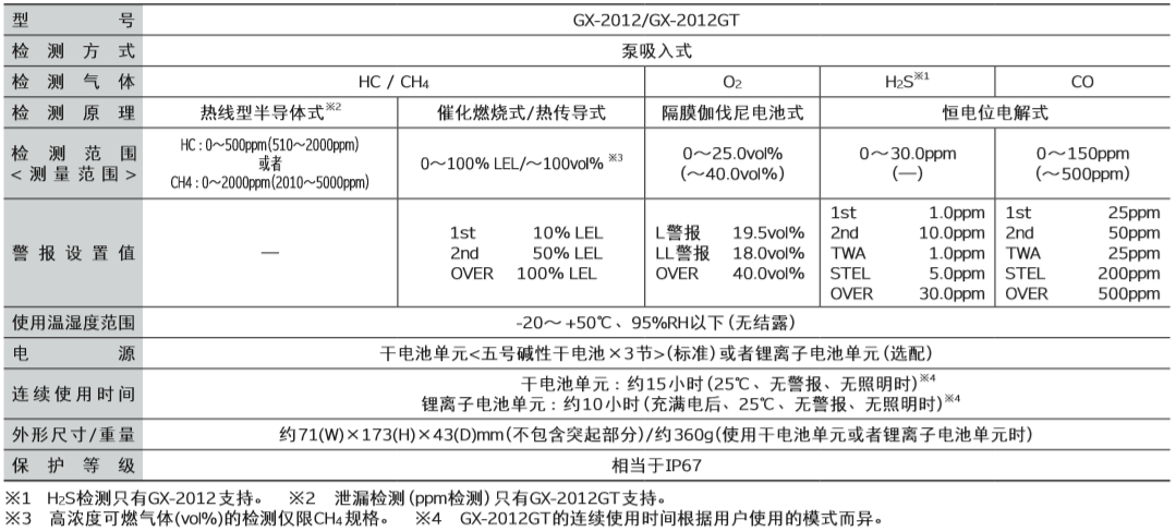 日本RIKEN(理研)GX-2012GT便攜式復(fù)合氣體檢測(cè)儀產(chǎn)品技術(shù)參數(shù):