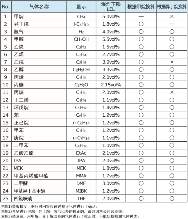 CH4、i-C4H10、H2、CH3OH、C2H2、C2H4、C2H6、C2H5OH、C3H6、C3H6O、C3H8、C4H6、C5H10、C6H6、n-C6H14、C7H8、n-C7H16、C8H10、EtAc、IPA、MEK、MMA、DME、MIBK、THF