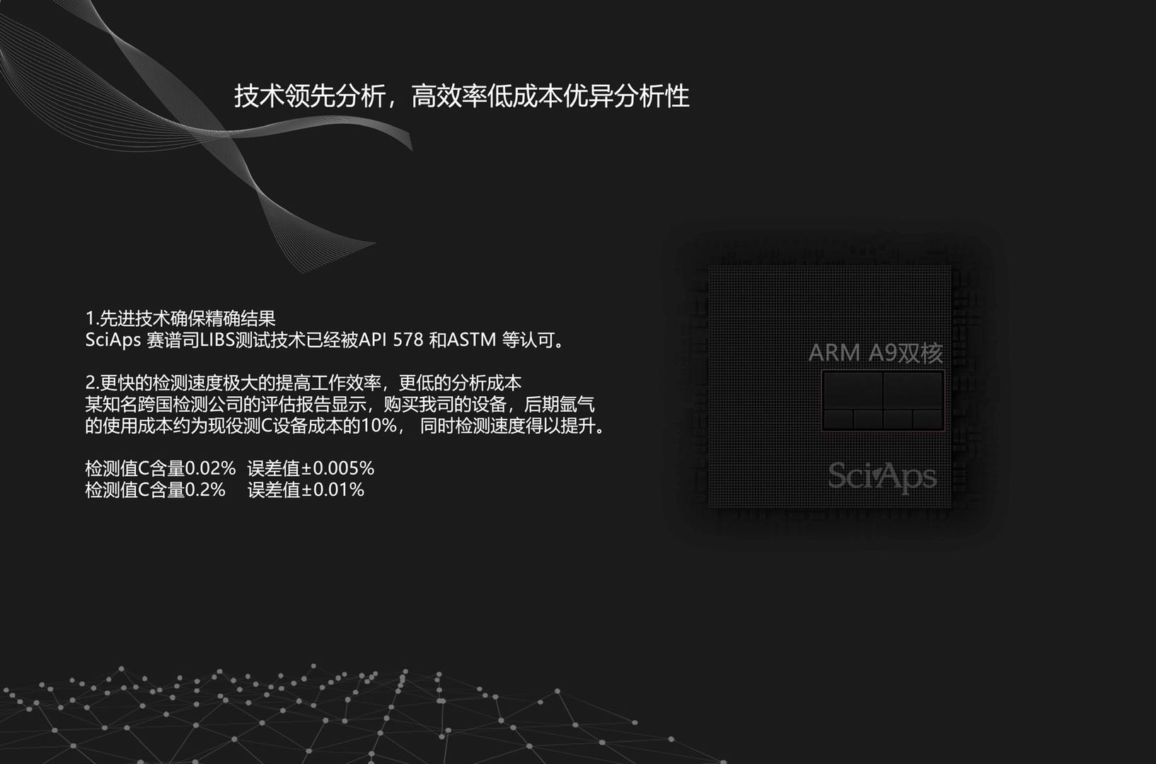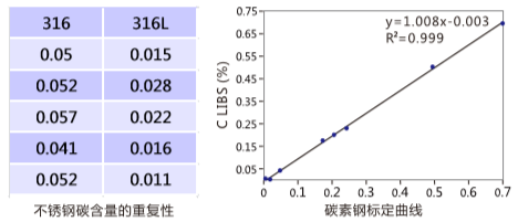 l 不銹鋼C含量檢測專業分析曲線;可檢測的元素包括:C, Si, Al, Ti, V, Cr, Mn, Fe, Co, Ni, Cu, Nb, Mo, Se, W.