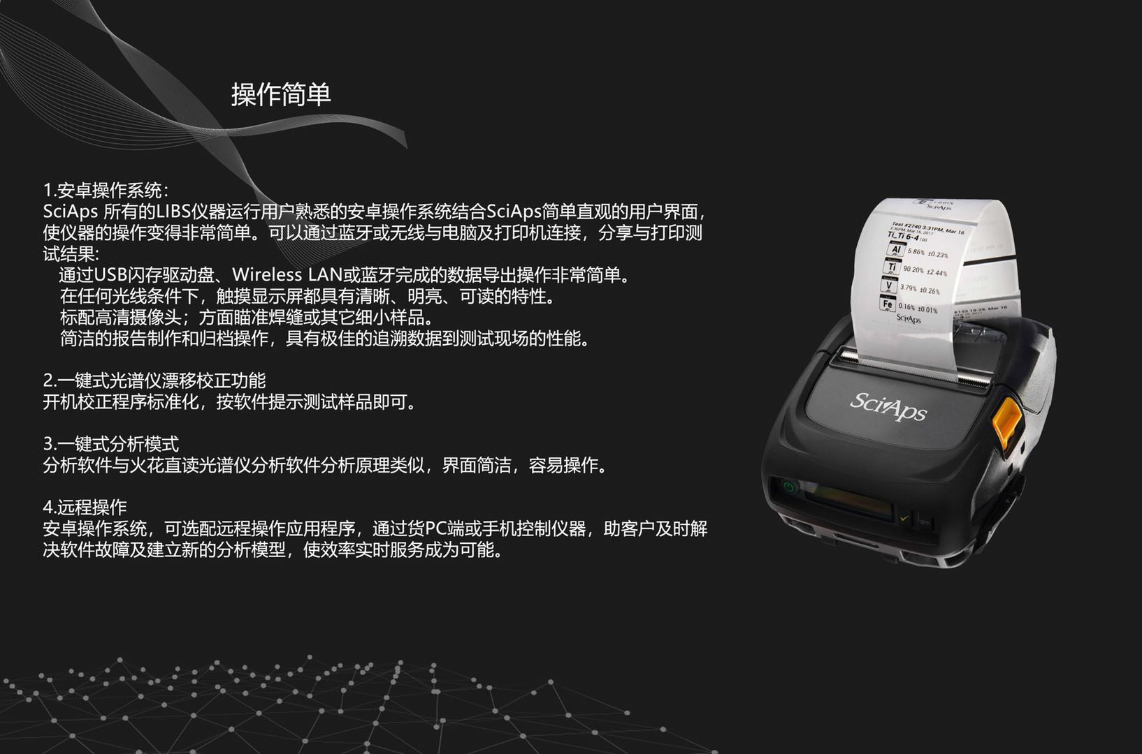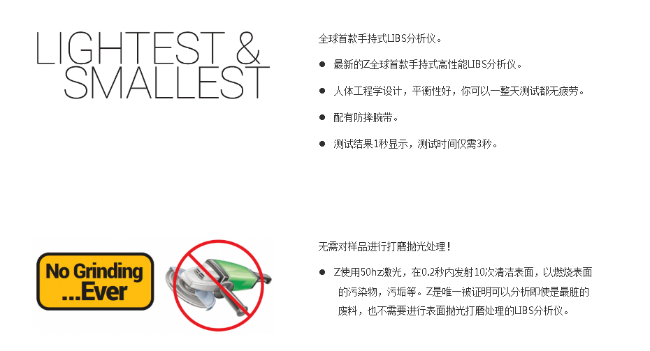 精密的化學元素分析。LBS(激光誘導擊穿光譜技術)是一種光學分析技術,與火花直讀光譜儀器(OES)樣。LIBS使用激光獲得等離子體光譜。而OES用電火花產生所需光譜。LIBS