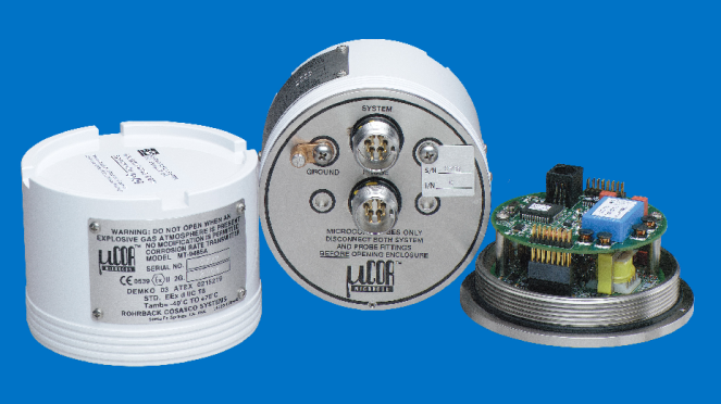 Microcor高分辨率數據變送器采用密封防爆盒,底部連接插頭為玻璃-鍍金插腳連接,并采用雙重O型密封圈密封,工作電源為24VDC,輸出信號為RS485信號。變送器有測量、邏輯以及電源等模塊組成,所有這些模塊在出廠前都已被標定。其工作原理為電磁感抗測量法(獲得北美、歐盟專*認證,專*號:5,583,426)。