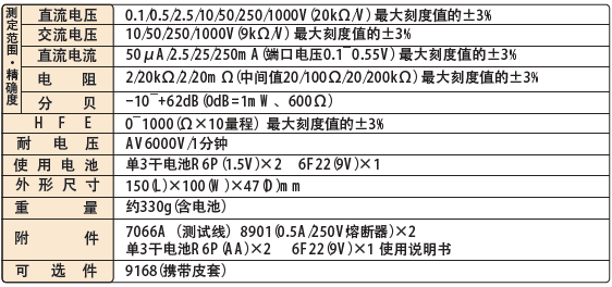 日本共立 KEW 1109S指針式萬用表 相關參數: