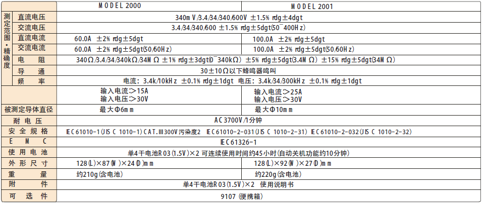 日本共立 MODEL 2000/2001 AC/DC叉形數(shù)字式萬(wàn)用表 相關(guān)參數(shù):