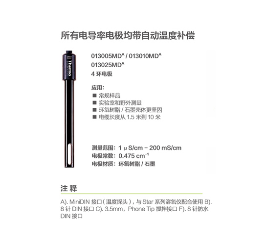 美國ORION奧立龍 013005MD常規(guī)水四環(huán)電導(dǎo)率電極產(chǎn)品概述: