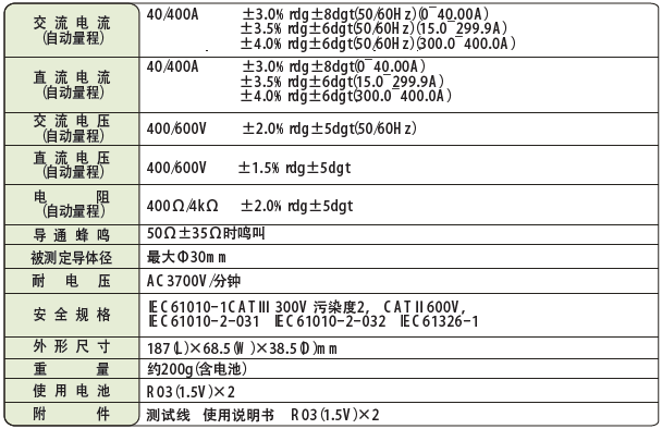 日本共立 MODEL 203 數字式鉗形表 相關參數: