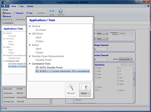 帶有 PWRVIEW 軟件的 PA3000 已預(yù)先加載默認(rèn)應(yīng)用模式和一致性測試,可始終確保輕松準(zhǔn)確地配置測試設(shè)置以實(shí)現(xiàn)可重復(fù)的精確測量。