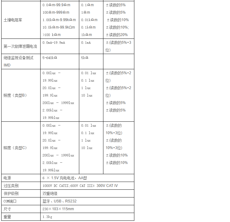 | 準(zhǔn)確度(接地測試調(diào)零之后) | ±(5% + 4 個字) | |
