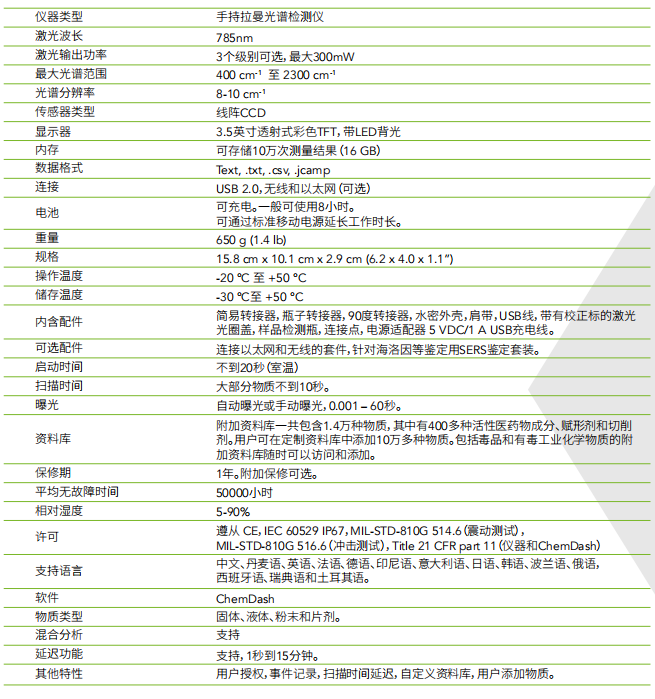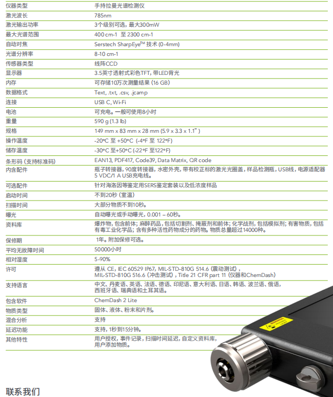 瑞典 SERSTECH 100 手持式拉曼光譜儀 產品參數: